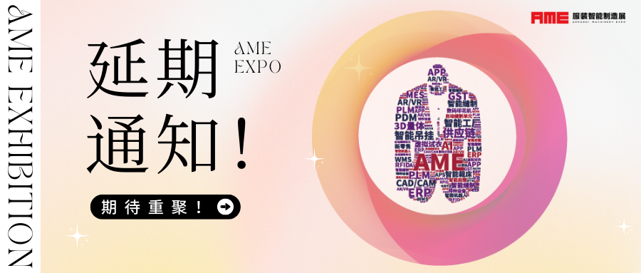 AME组委会经多方研究协调后决定:原定2022年10.9-11日在浙江杭州国际博览中心举办的“2022AME服装智能制造展”将延期举办,具体时间另行通知,举办地点不变。